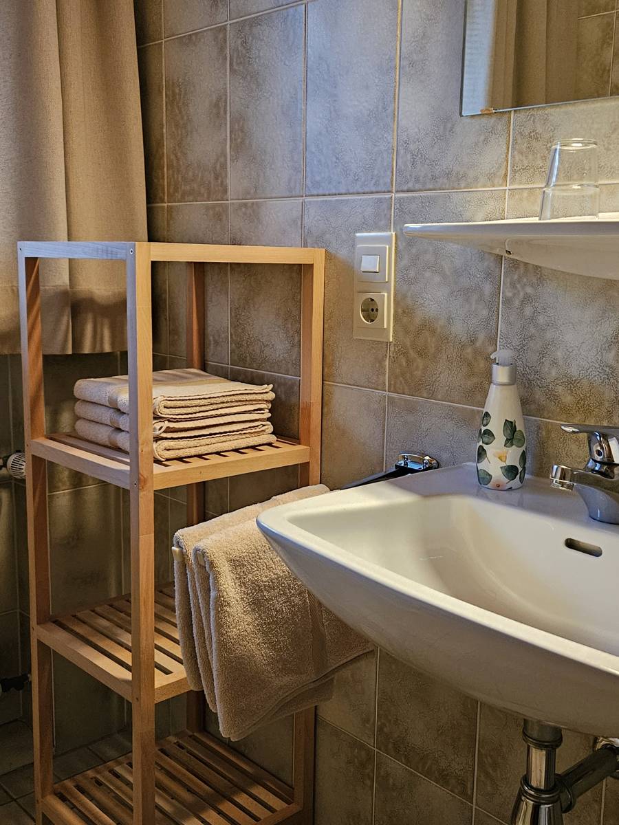 Handtücher und Duschtücher sind in ausreichender Anzahl vorhanden
